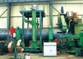 螺旋钢管的制造工艺主要包括以下几个步骤:原材料准备:原材料是带钢卷、焊丝和焊剂,在投入前都要经过严格的理化检验。带钢处理:带钢经过矫平、剪边、刨边,表面清理输送和予弯边处理。成型与焊接:采用电接点压力表控制输送机两边压下油缸的压力,确保带钢平稳输送。采用外控或内控辊式成型。采用焊缝间隙控制装置来保证焊缝间隙满足焊接要求,管径、错边量和焊缝间隙都得到严格控制。内焊和外焊均采用单丝或双丝埋弧焊接,从而获得稳定的焊接质量。焊缝检查与修补:焊完的焊缝均经过在线连续超声波自动伤仪检查,保证螺旋焊缝的无损检测覆盖率。如有缺陷,自动报警并喷涂标记,生产工人依此随时调整工艺参数,及时消除缺陷。焊缝上有连续声波探伤标记的部位,经过手动超声波和X射线复查,如确有缺陷,经过修补后,再次经过无损检验,直到确认缺陷已经消除。带钢对焊焊缝及与螺旋焊缝相交的丁型接头的所在管,全部经过X射线电视或拍片检查。水压试验与机械加工:每根钢管经过静水压试验,压力采用径向密封。试验压力和时间都由螺旋钢管水压微机检测装置严格控制。试验参数自动打印记录。管端机械加工,使端面垂直度、坡口角和钝边得到准确控制。 螺旋钢管 螺旋钢管 三油两布防腐管 螺旋钢管 异径管 弯头 法兰 螺旋钢管 三油两布防腐管 异径管 螺旋钢管